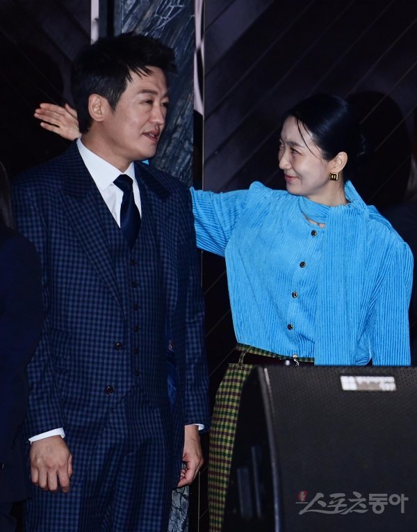 배우 허성태와 김주령이 14일 서울 종로구 JW메리어트동대문스퀘어서울에서 열린 디즈니플러스 ‘카지노’ 제작발표회에서 포토타임을 마친 후 이야기를 하고 있다.