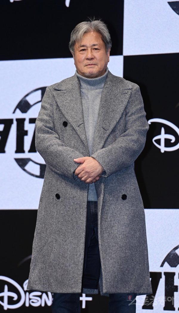 배우 최민식이 14일 서울 종로구 JW메리어트동대문스퀘어서울에서 열린 디즈니플러스 ‘카지노’ 제작발표회에서 포즈를 취하고 있다.