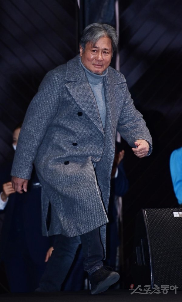 배우 최민식이 14일 서울 종로구 JW메리어트동대문스퀘어서울에서 열린 디즈니플러스 ‘카지노’ 제작발표회 무대에 오르고 있다.