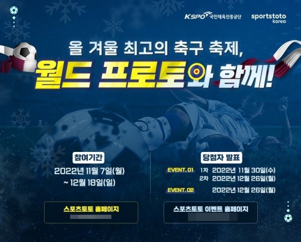 이번 이벤트는 국내 스포츠팬들이 모든 월드컵 경기들을 온전히 즐길 수 있는 기회의 장을 마련하는 한편 카타르월드컵 우승국을 맞히는 게임인 프로토 기록식 스페셜 50회차를 알리기 위해 지난달 21일(월)부터 약 한 달간 진행돼왔다.