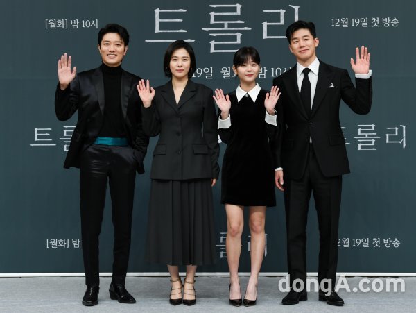 박희순, 김현주, 정수빈, 김무열이 15일 오후 진행된 SBS 새 월화드라마 ‘트롤리’ 제작발표회에서 포즈를 취하고 있다.