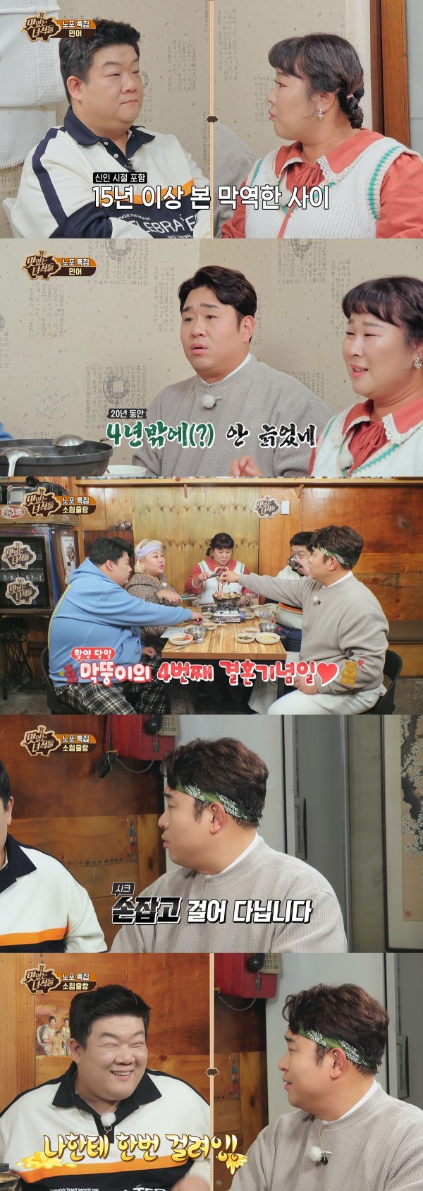 최근 진행된 녹화에서 뚱5는 민어회의 다양한 맛에 감탄을 금치 못했다. 그러던 중 홍윤화가 유민상과 김민경의 15년 인연에 대해 언급했고, 유민상이 "\'마른인간연구소\' 시절에 27세였다"라고 밝혀 놀라움을 안겼다.