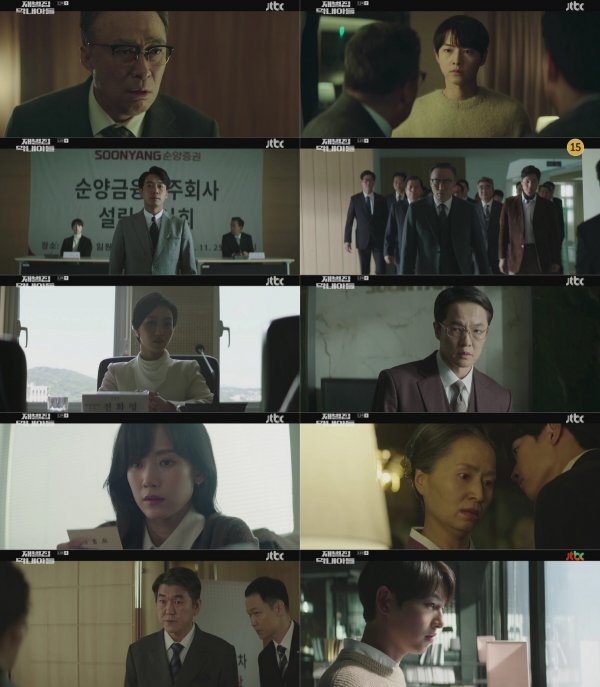 지난 16일 방송된 JTBC 금토일드라마 ‘재벌집 막내아들’(연출 정대윤∙김상호, 극본 김태희∙장은재, 제작 SLL∙래몽래인∙재벌집막내아들문화산업전문회사) 12회에서는 순양가 안팎을 뒤집은 왕자들의 반란이 그려졌다. 진도준(송중기 분)은 이사회장에 극적으로 나타난 진양철(이성민 분)의 도움을 받아 무사히 순양금융지주회사 사장 후보에 올랐다. 점점 공고해지는 후계 구도에 진영기(윤제문 분)와 진동기(조한철 분), 진성준(김남희 분)의 위기감은 높아졌고, 결국 진양철을 끌어내리기 시작했다. 순양의 이름까지 내건 이들의 반란은 또 한 번 휘몰아칠 게임을 예고하며 궁금증을 증폭시켰다.