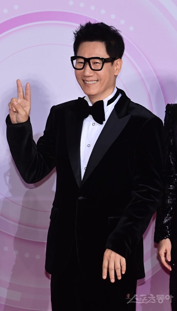 개그맨 지석진이 17일 서울 마포구 상암동 SBS프리즘타워에서 열린 ‘2022 SBS 연예대상’ 포토월에서 포즈를 취하고 있다.
