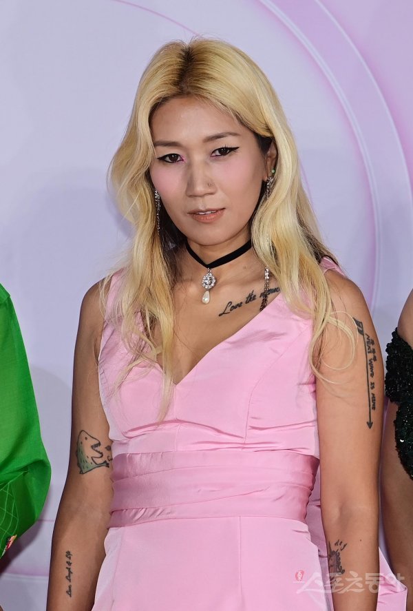 요니P가 17일 서울 마포구 상암동 SBS프리즘타워에서 열린 ‘2022 SBS 연예대상’ 포토월에서 포즈를 취하고 있다.