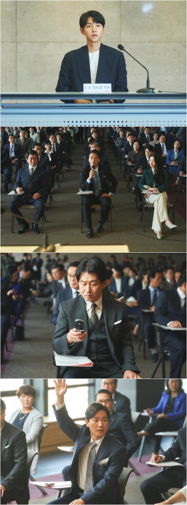18일 JTBC 금토일드라마 ‘재벌집 막내아들’(연출 정대윤, 극본 김태희∙장은재, 제작 SLL∙래몽래인∙재벌집막내아들문화산업전문회사) 측은 순양그룹 주주총회 현장을 공개했다.