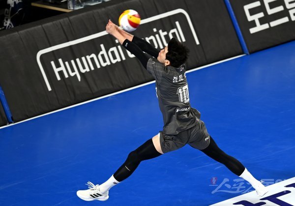18일 충청남도 천안유관순체육관에서 ‘2022-2023 도드람 V리그’ 천안 현대캐피탈과 인천 대한항공의 남자부 경기가 열렸다. 대한항공 정지석이 수비를 펼치고 있다.