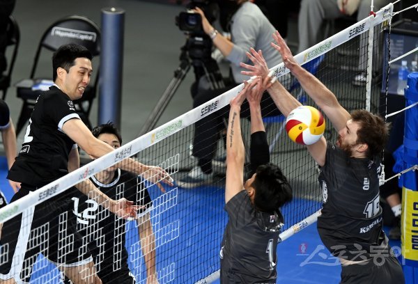 18일 충청남도 천안유관순체육관에서 ‘2022-2023 도드람 V리그’ 천안 현대캐피탈과 인천 대한항공의 남자부 경기가 열렸다. 현대캐피탈 최민호가 대한항공 블로커를 피해 공격을 펼치고 있다.