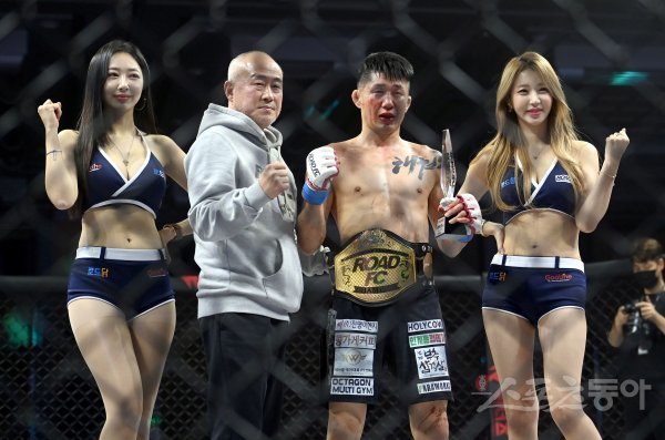 18일 서울 서대문구 스위스 그랜드 호텔 서울에서 ‘굽네 ROAD FC 062’ 가 열렸다. 밴텀급 타이틀전에서 승리한 문제훈이 기념촬영을 하고 있다.