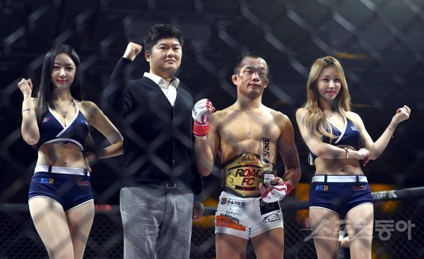 18일 서울 서대문구 스위스 그랜드 호텔 서울에서 ‘굽네 ROAD FC 062’ 가 열렸다. 페더급 타이틀전에서 슬리한 박해진이 기념촬영을 하고 있다.