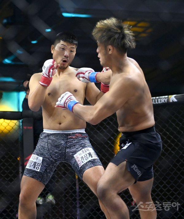 18일 서울 서대문구 스위스 그랜드 호텔 서울에서 ‘굽네 ROAD FC 062’ 가 열렸다. 73kg 계약체중 매치에서 권아솔(한국)과 나카무라 코지(일본)가 경기를 펼치고 있다.