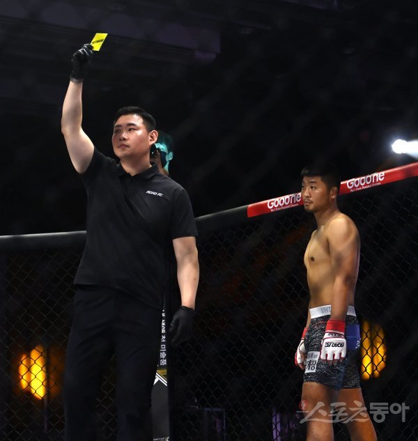 18일 서울 서대문구 스위스 그랜드 호텔 서울에서 ‘굽네 ROAD FC 062’ 가 열렸다. 73kg 계약체중 매치에서 권아솔(한국)이 경고를 받으며 매 라운드 10점의 감점을 받는다.