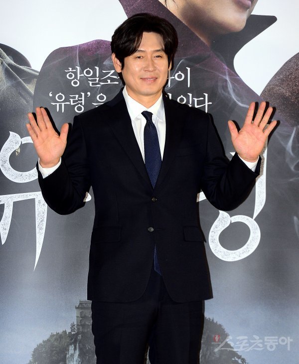배우 설경구가 19일 서울 용산구 CGV용산아이파크몰에서 열린 영화 ‘유령’ 제작보고회에서 카메라를 향해 포즈를 취하고 있다.