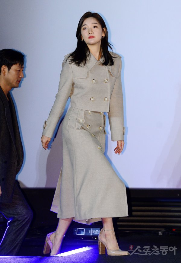 배우 박소담이 19일 서울 용산구 CGV용산아이파크몰에서 열린 영화 ‘유령’ 제작보고회에서 무대를 오르고 있다.