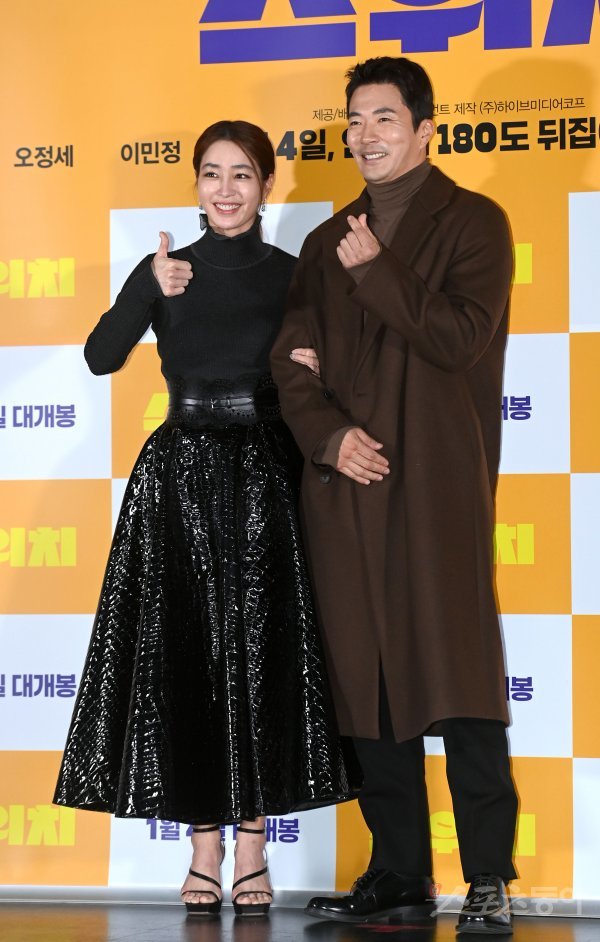 배우 이민정과 권상우가 19일 서울 광진구 롯데시네마 건대입구점에서 열린 영화 ‘스위치’ 시사회에서 포토타임을 갖고 있다.