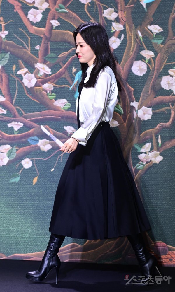 배우 송혜교가 20일 서울 종로구 JW메리어트동대문스퀘어서울에서 열린 넷플릭스 시리즈 ‘더 글로리’ 제작발표회 무대에 오르고 있다.