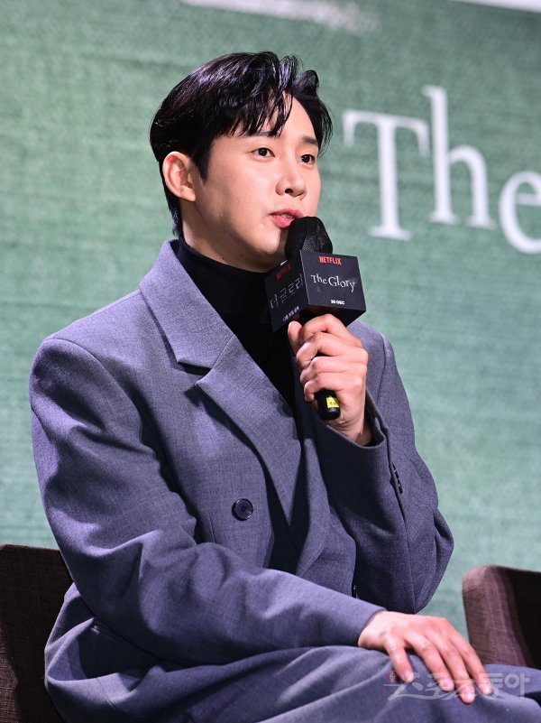 배우 박성훈이 20일 서울 종로구 JW메리어트동대문스퀘어서울에서 열린 넷플릭스 시리즈 ‘더 글로리’ 제작발표회에서 인사말을 하고 있다.