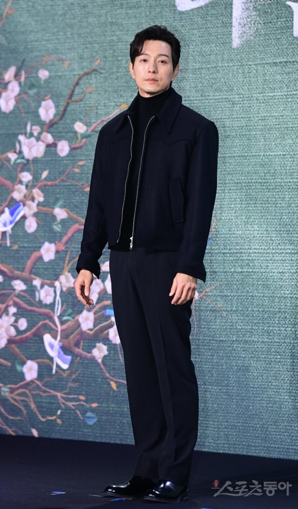 배우 정성일이 20일 서울 종로구 JW메리어트동대문스퀘어서울에서 열린 넷플릭스 시리즈 ‘더 글로리’ 제작발표회에서 포즈를 취하고 있다.
