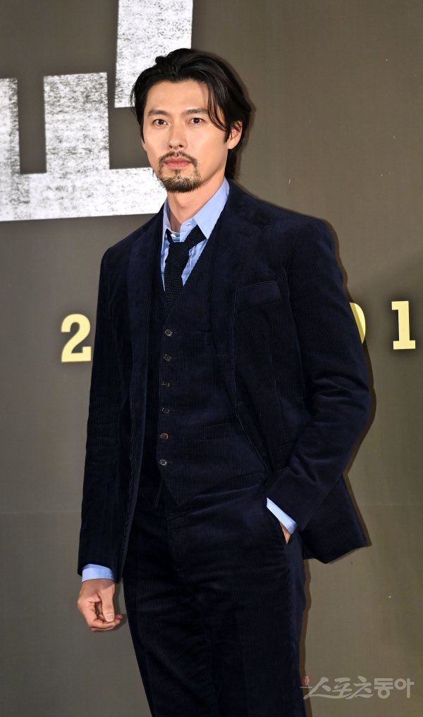 배우 현빈이 20일 서울 성동구 메가박스 성수에서 열린 영화 ‘교섭’ 제작보고회에서 포토타임을 갖고 있다.