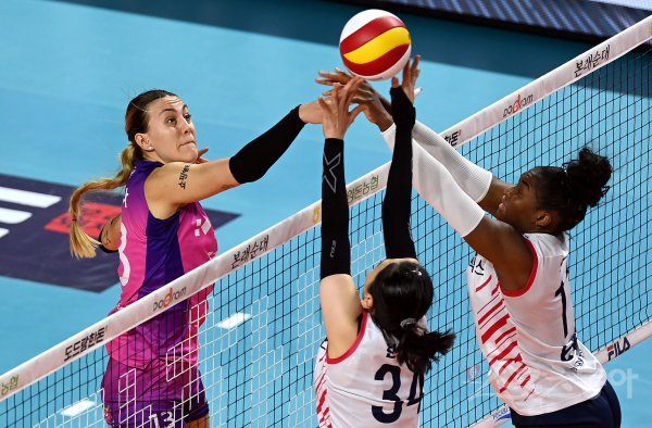 20일 인천 삼선월드체육관에서 ‘2022-2023 도드람 V리그’ 인천 흥국생명과 서울 GS칼텍스의 여자부 경기가 열렸다. 흥국생명 옐레나가 GS칼텍스 블로커를 피해 공격을 펼치고 있다.