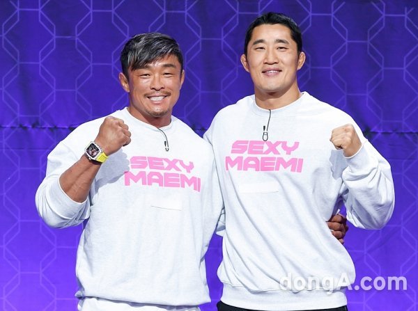 추성훈, 김동현이 21일 오전 진행된 SBS 격투기 서바이벌 예능 ‘순정 파이터’ 제작발표회에서 포즈를 취하고 있다.