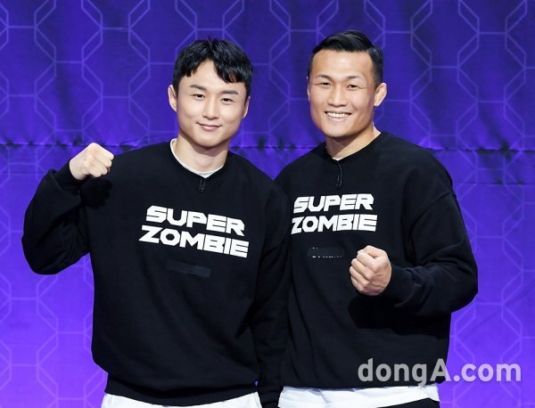 최두호 정찬성이 21일 오전 진행된 SBS 격투기 서바이벌 예능 ‘순정 파이터’ 제작발표회에서 포즈를 취하고 있다.