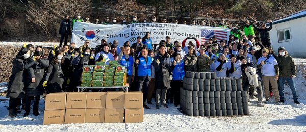 모다모다가 20일 경기 포천시에서 주한미군 제8군 및 육군 제5군단의 취약 계층 연탄 나눔 행사에 동참하고 3000만원 상당 갈변 샴푸 1000개를 기부했다.