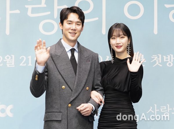 유연석, 문가영이 21일 오후 진행된 JTBC 새 수목드라마 ‘사랑의 이해’ 제작발표회에서 포즈를 취하고 있다.