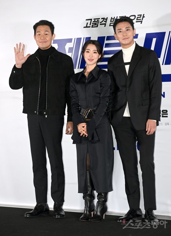 21일 서울 강남구 메가박스 코엑스에서 열린 영화 ‘젠틀맨’ 시사회에서 배우 박성웅, 최성은, 주지훈이 포토타임을 갖고 있다.