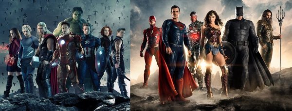 사진은 마블의 ‘어벤져스’ 시리즈와 DC의 ‘저스티스 리그’ 시리즈의 주인공들.(왼쪽부터)