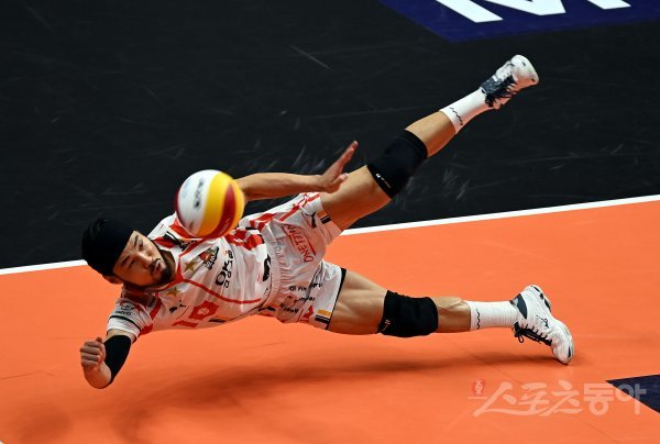 21일 경기도 안산 상록수체육관에서 ‘2022-2023 도드람 V리그’ 안산 OK금융그룹과 서울 우리카드의 남자부 경기가 열렸다. OK금융그룹 부용찬이 수비를 펼치고 있다.