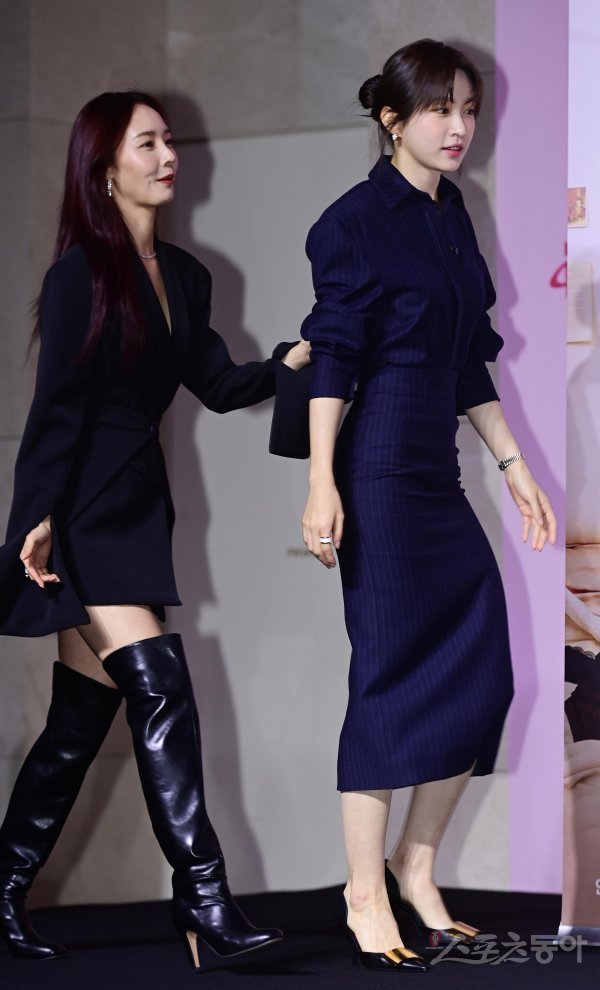 가수 겸 배우 배우희, 안희연(하니)이 22일 서울 강남구 역삼동 조선팰리스 서울강남에서 열린 쿠팡플레이 시리즈 ‘판타G스팟’ 제작발표회 무대에 오르고 있다.