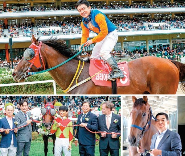 시리즈에서 3경주 모두 우승해 초대 여왕의 자리에 오른 골든파워와 손병철 마주(오른쪽 아래). 3년만에 열린 국제경마대회 코리아컴