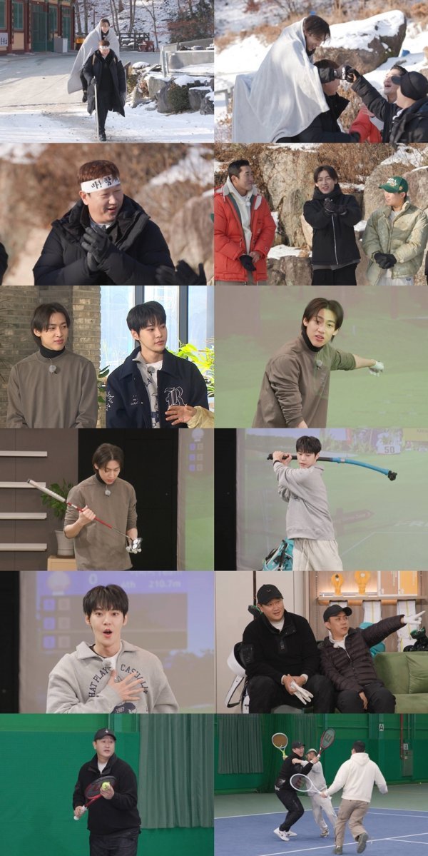 이번에 공개된 사진은 여섯 제자 양세형, 김동현, 은지원, 도영, 이대호, 뱀뱀의 만남을 포착했다. 이대호는 ‘마! 함 해 보자’라고 쓰인 머리띠를 두른 채 뱀뱀을 지게에 업고 등장했다. 골프 퍼팅 연습을 하는 막내라인 도영과 뱀뱀의 모습도 공개됐다.