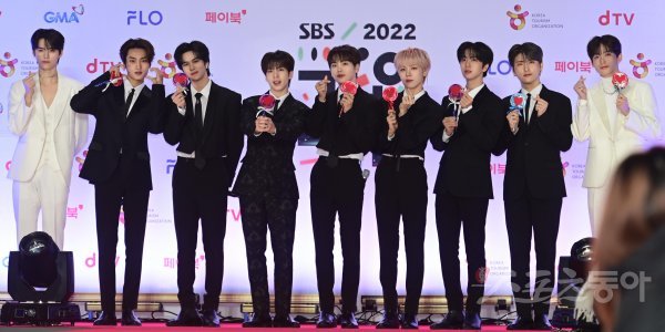 그룹 크래비티가 24일 서울 고척스카이돔에서 열린 ‘2022 SBS 가요대전’ 레드카펫 포토월에서 포즈를 취하고 있다.