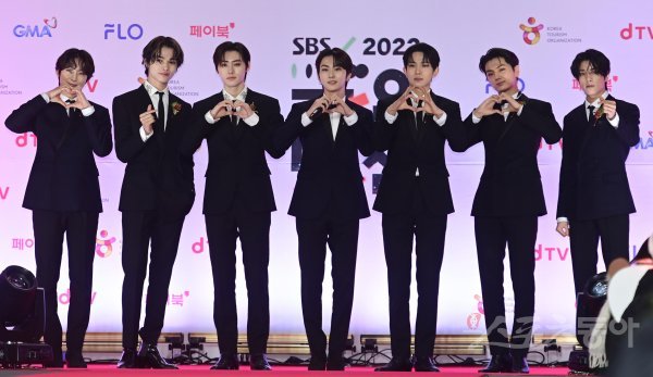 그룹 엔하이픈이 24일 서울 고척스카이돔에서 열린 ‘2022 SBS 가요대전’ 레드카펫 포토월에서 포즈를 취하고 있다.