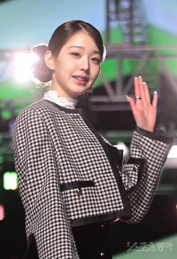아이브 장원영이 24일 서울 고척스카이돔에서 열린 ‘2022 SBS 가요대전’ 레드카펫에서 취재진에게 인사하고 있다.