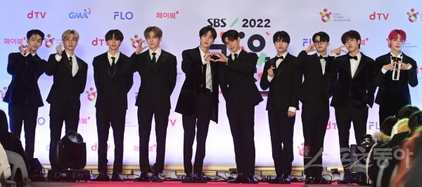 그룹 더보이즈가 24일 서울 고척스카이돔에서 열린 ‘2022 SBS 가요대전’ 레드카펫 포토월에서 포즈를 취하고 있다.
