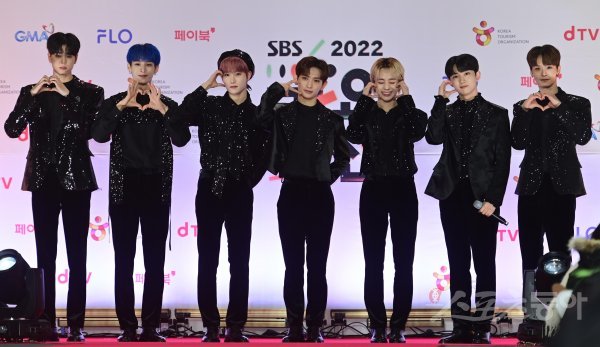 그룹 템페스트가 24일 서울 고척스카이돔에서 열린 ‘2022 SBS 가요대전’ 레드카펫 포토월에서 포즈를 취하고 있다.