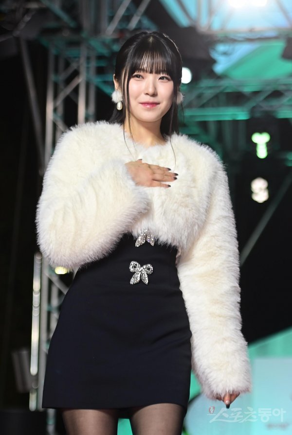 프로미스나인 백지헌이 24일 서울 고척스카이돔에서 열린 ‘2022 SBS 가요대전’ 레드카펫에서 취재진에게 인사하고 있다.