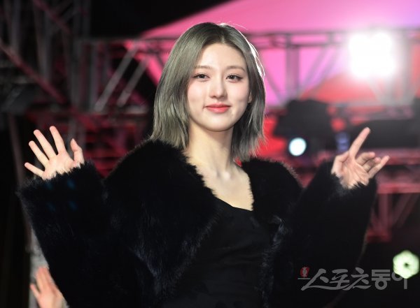 아이브 가을이 24일 서울 고척스카이돔에서 열린 ‘2022 SBS 가요대전’ 레드카펫에서 취재진에게 인사하고 있다.
