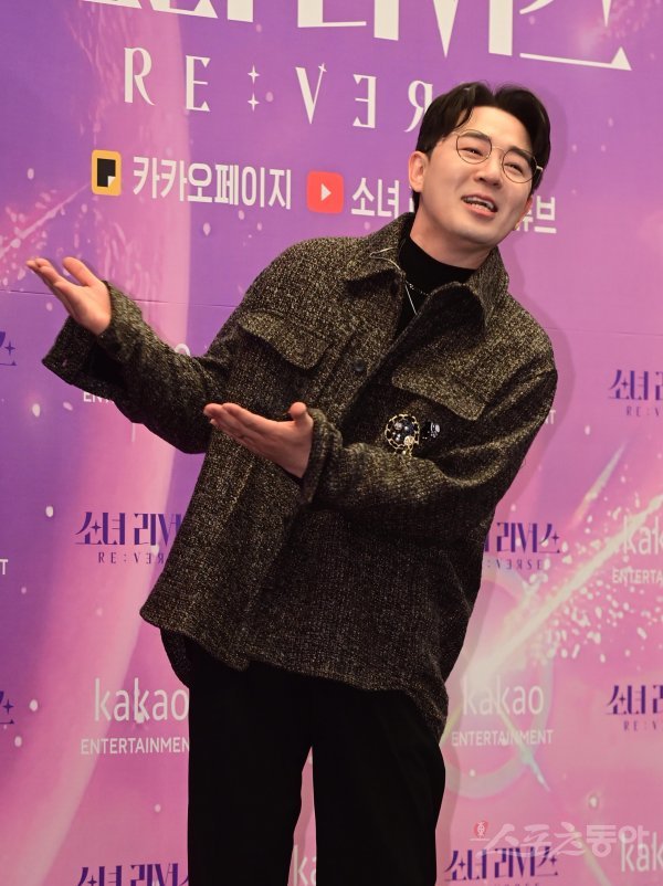 방송인 붐이 27일 서울 마포구 상암동 스탠포드호텔에서 열린 카카오엔터테인먼트 ‘소녀 리버스’ 제작발표회에서 포즈를 취하고 있다.