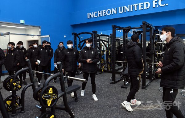 인천유나이티드가 창단 20주년을 앞두고 27일 인천 연수구 선학동 인천유나이티드 FC 축구센터에서 개관식이 열렸다. 인천유나이티드 선수들이 체력단련실을 살펴보고 있다.