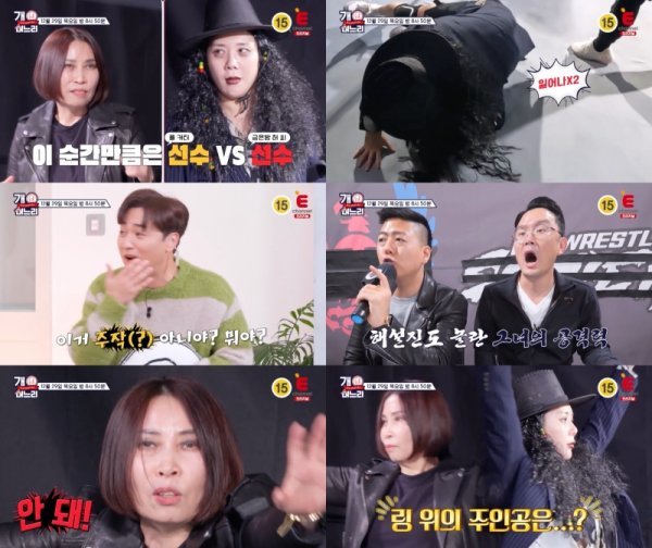 오늘(29일) 티캐스트 E채널 예능 프로그램 ‘개며느리’(연출 박소현, 작가 안용진) 7회 예고에는 예능 최초로 고부가 링 위에서 만나 겨루는 장면이 공개됐다.