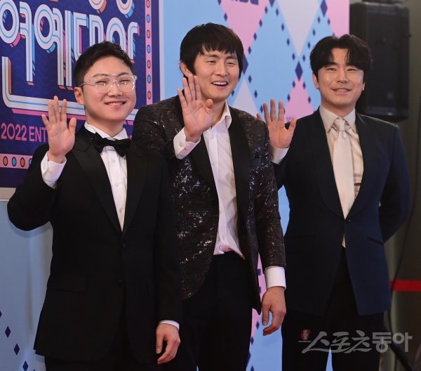 빠니보틀, 기안84, 이시언이 29일 서울 마포구 상암동 MBC미디어센터에서 열린 ‘2022 MBC 방송연예대상’ 포토월에서 포즈를 취하고 있다.