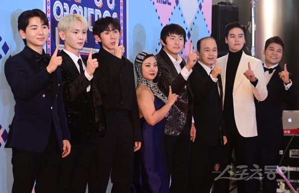 이주승, 키, 코드쿤스트, 박나래, 기안84, 김광규, 이장우, 전현무가 29일 서울 마포구 상암동 MBC미디어센터에서 열린 ‘2022 MBC 방송연예대상’ 포토월에서 포즈를 취하고 있다.