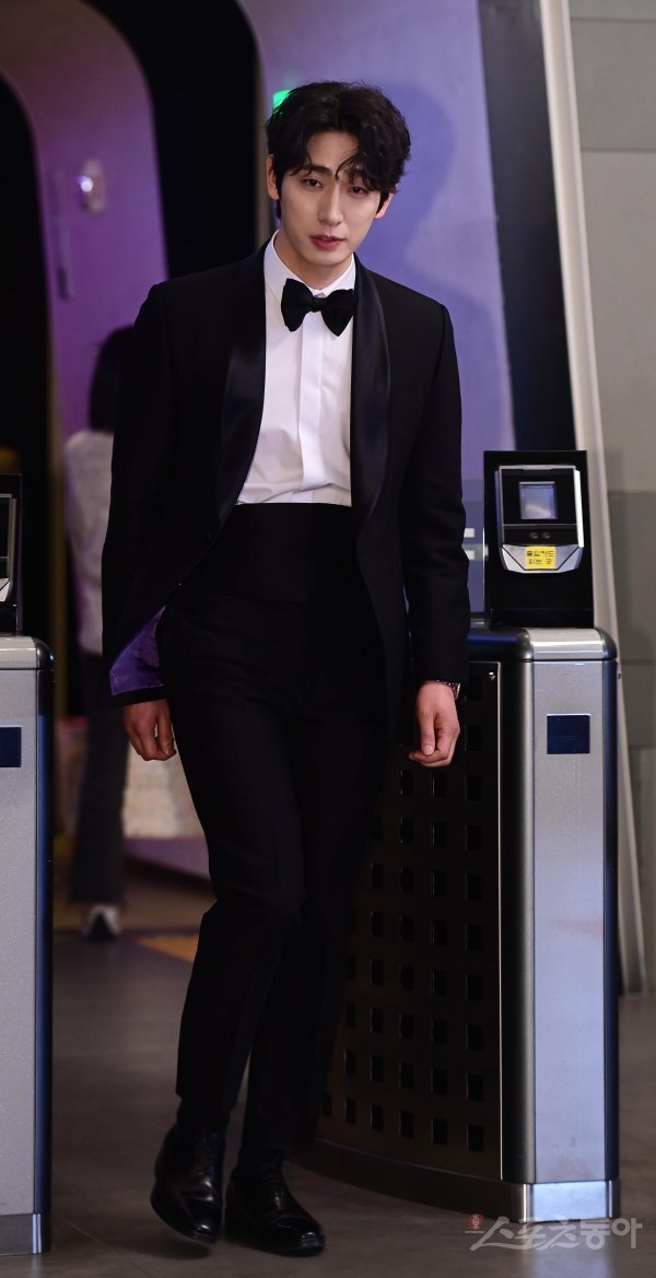 배우 윤박이 30일 서울 마포구 상암동 MBC미디어센터에서 열린 ‘2022 MBC 연기대상’ 포토월에 입장하고 있다.
