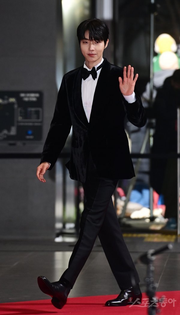배우 황인엽이 31일 서울 마포구 상암동 SBS프리즘타워에서 열린 ‘2022 SBS 연기대상’ 포토월에 입장하고 있다.