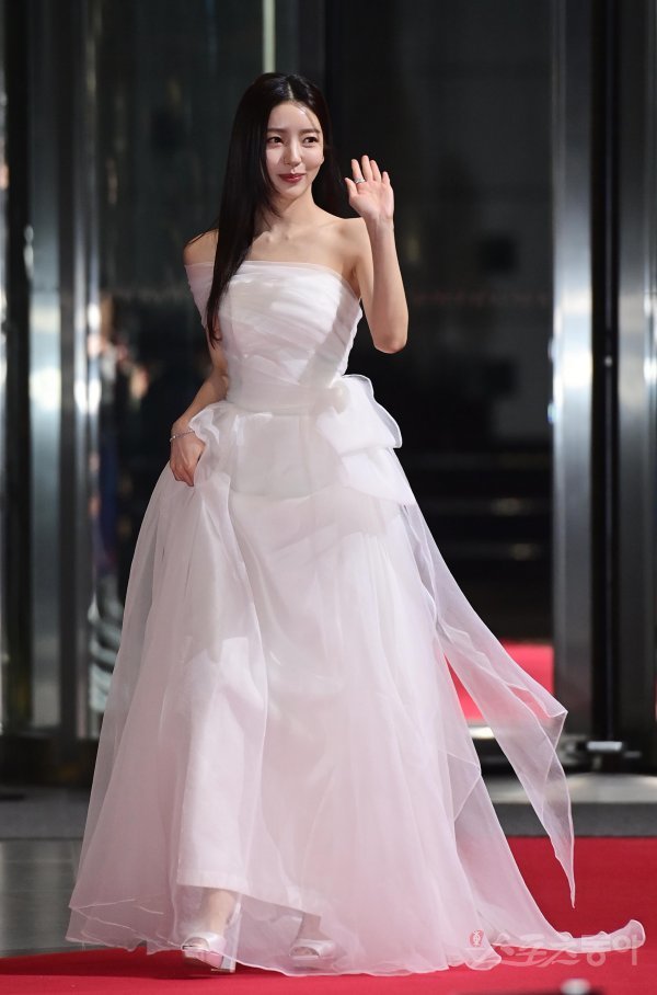 배우 홍지윤이 31일 서울 마포구 상암동 SBS프리즘타워에서 열린 ‘2022 SBS 연기대상’ 포토월에 입장하고 있다.