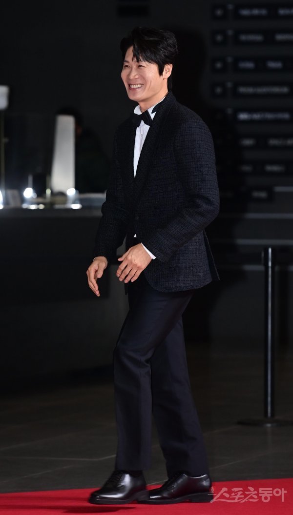 배우 진선규가 31일 서울 마포구 상암동 SBS프리즘타워에서 열린 ‘2022 SBS 연기대상’ 포토월에 입장하고 있다.